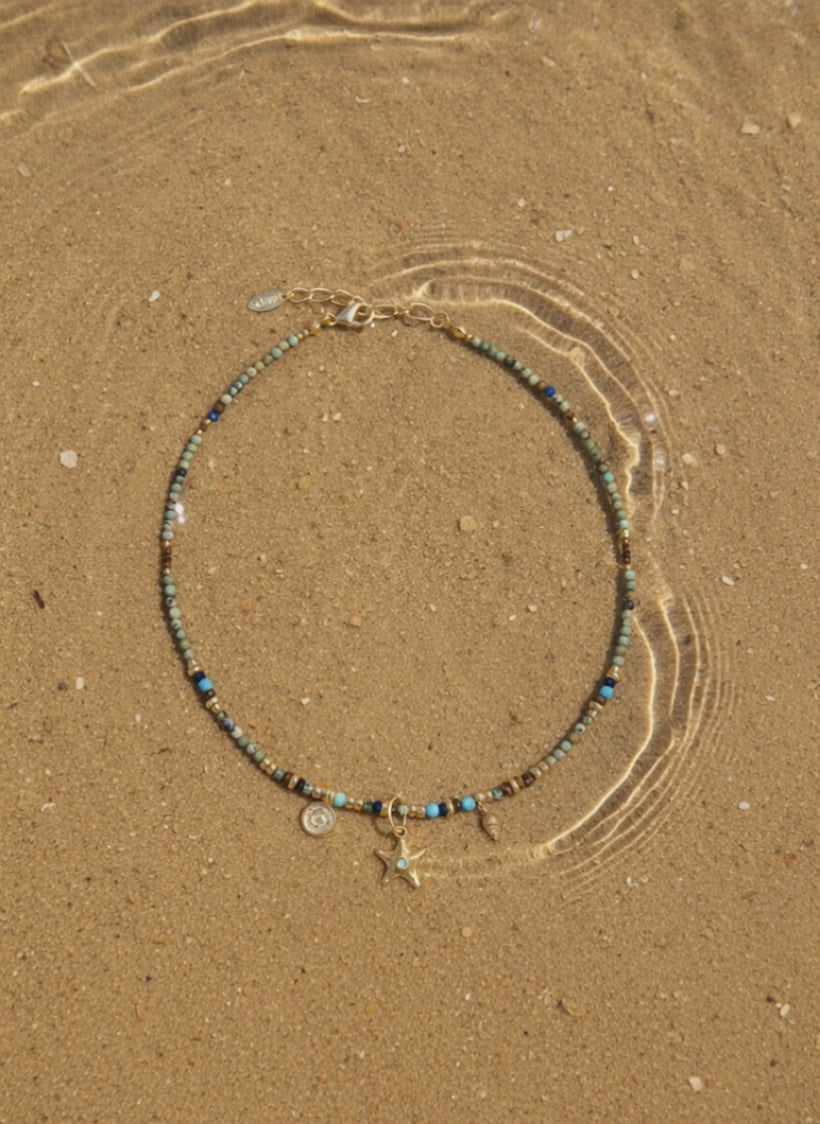 Handmade Natural Stone Bead Starfish Pendant Necklace
